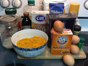 In a large bowl mix the pumpkin, eggs, oil, applesauce, water, and vanilla.