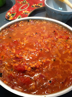 Ahhh.. Lentils. So good for you and so filling. This is a simple dish that lends itself to a nice warm breakfast or dinner. This isn't the most flattering picture, but it's really beautiful in person.