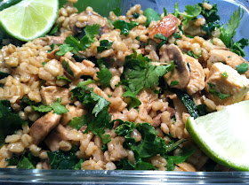 In an effort to stick stick to my guns about keeping quick healthy meals in the refrigerator this awesome brown rice salad was born.