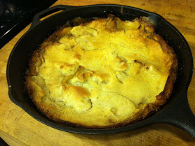 When apples are done add the egg mixture to the pan and bake until puffed and brown, 15-20 minutes.